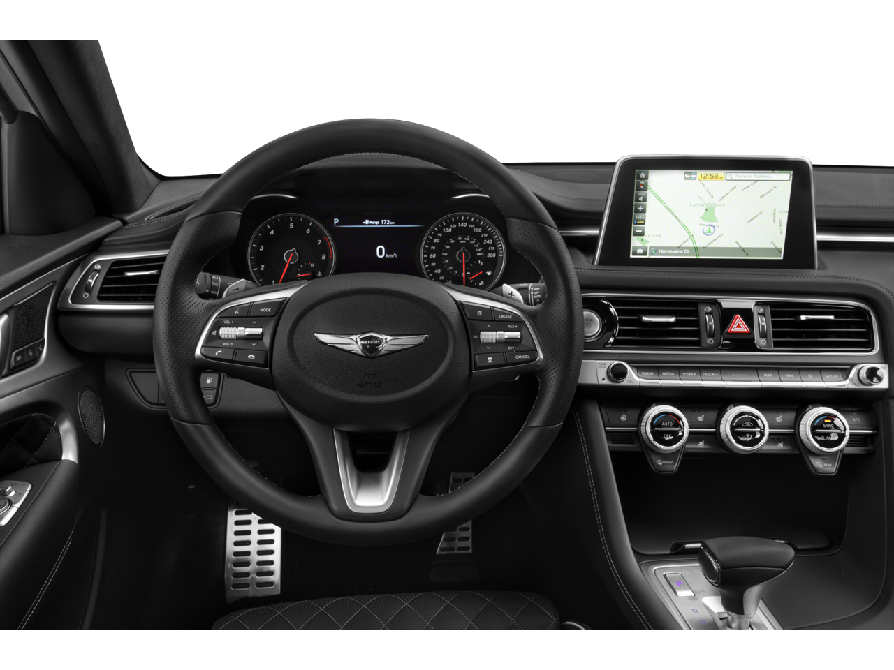 - Radio: AM/FM/HD Radio/SiriusXM Lexicon Audio -inc: 660-Watt, 8-inch 720P HD touchscreen display, integrated navigation, HD Traffic, 15-high-efficiency speakers including 2 subwoofers, 11-channel digital external amplifier, speed-sensing auto volume control, Bluetooth® hands-free phone system, Android Auto, Apple CarPlay, 2 front USB ports, auxiliary input jack and Genesis Connected Services telematics
